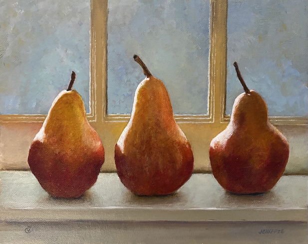 Red Bartletts on The Windowsill, Oil on Canvas, 8" x 10"