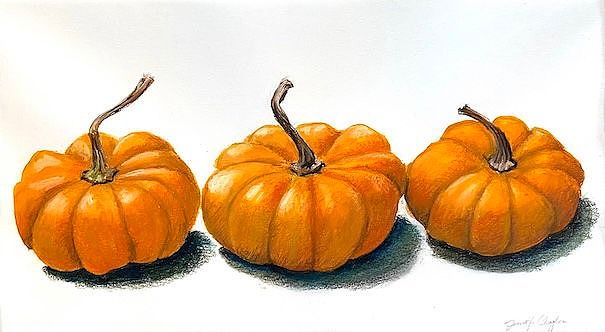 3 Little Pumpkins, Watercolor & Pastel, 11.5"x 7.5"