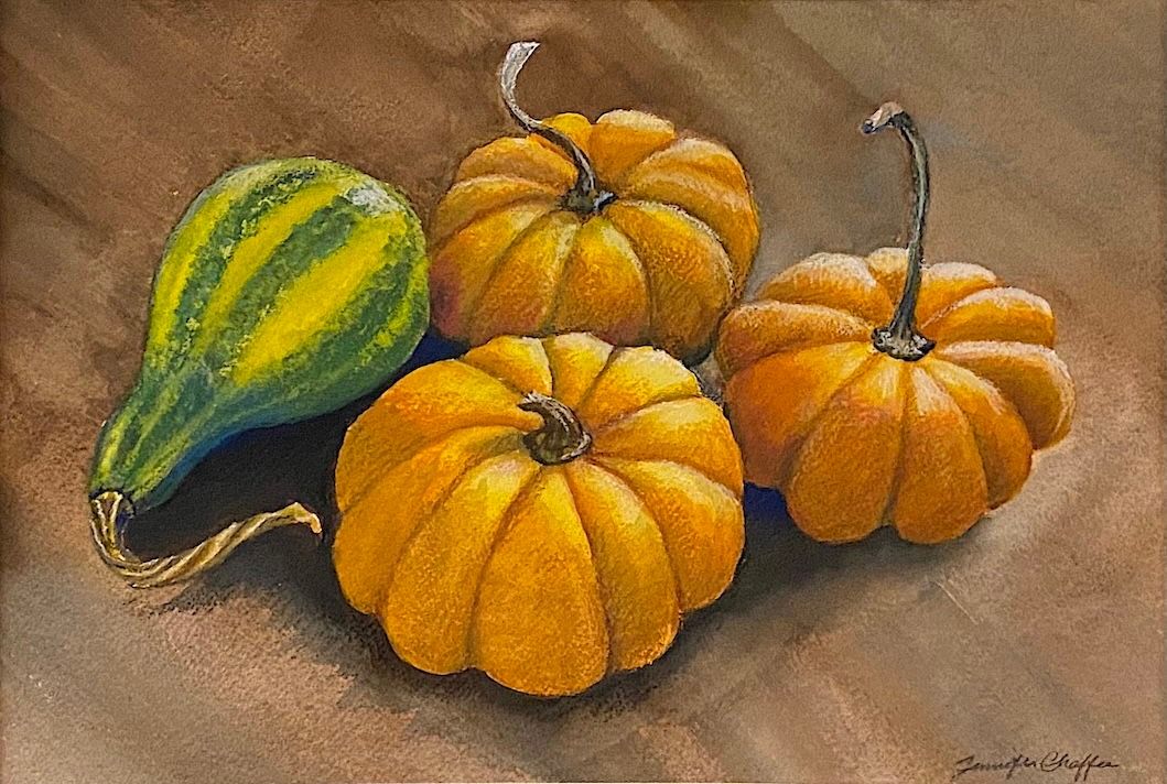 Pumpkins and Squash, watercolor and pastel, 11" x 14"