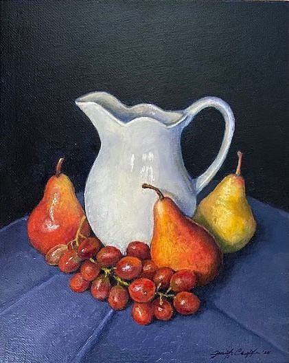 Pitcher with Pears & Grapes, oil on canvas, 8" x 10"